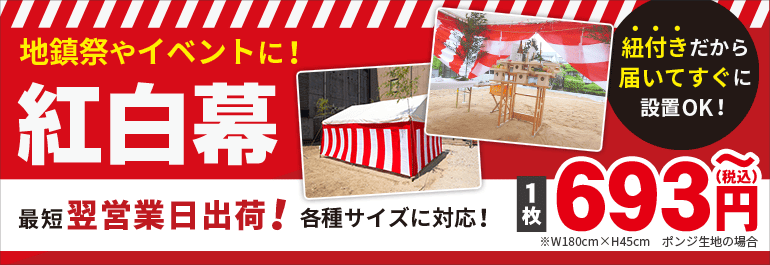 紅白幕は、赤と白の縦縞で構成された装飾用の幕で、住宅の完成見学会や地域の催し物などに使用されます。