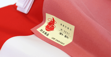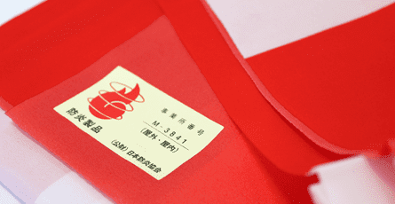防炎性能は公益財団法人日本防炎協会の基準をクリアしており、防炎加工シールが付いています。