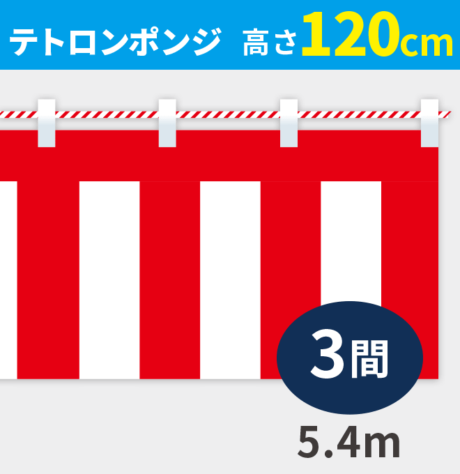 紅白幕ポンジ高さ120cm×長さ5.4m紅白ひも付