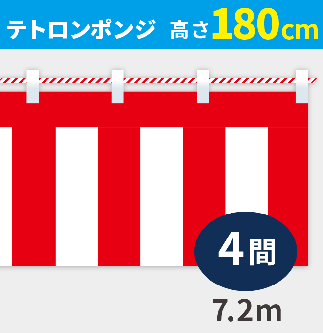 紅白幕ポンジ高さ180cm×長さ7.2m紅白ひも付