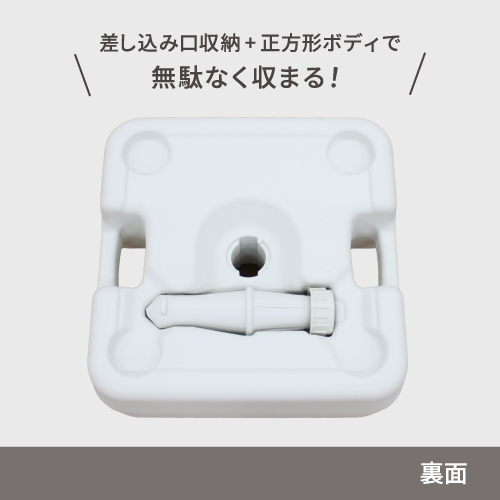 本体を2台重ねて設置する際は、本体内部に水や砂などを入れた状態で凹凸を合わせて重ねてください。その状態でハンドル部分を紐で縛って固定してください。